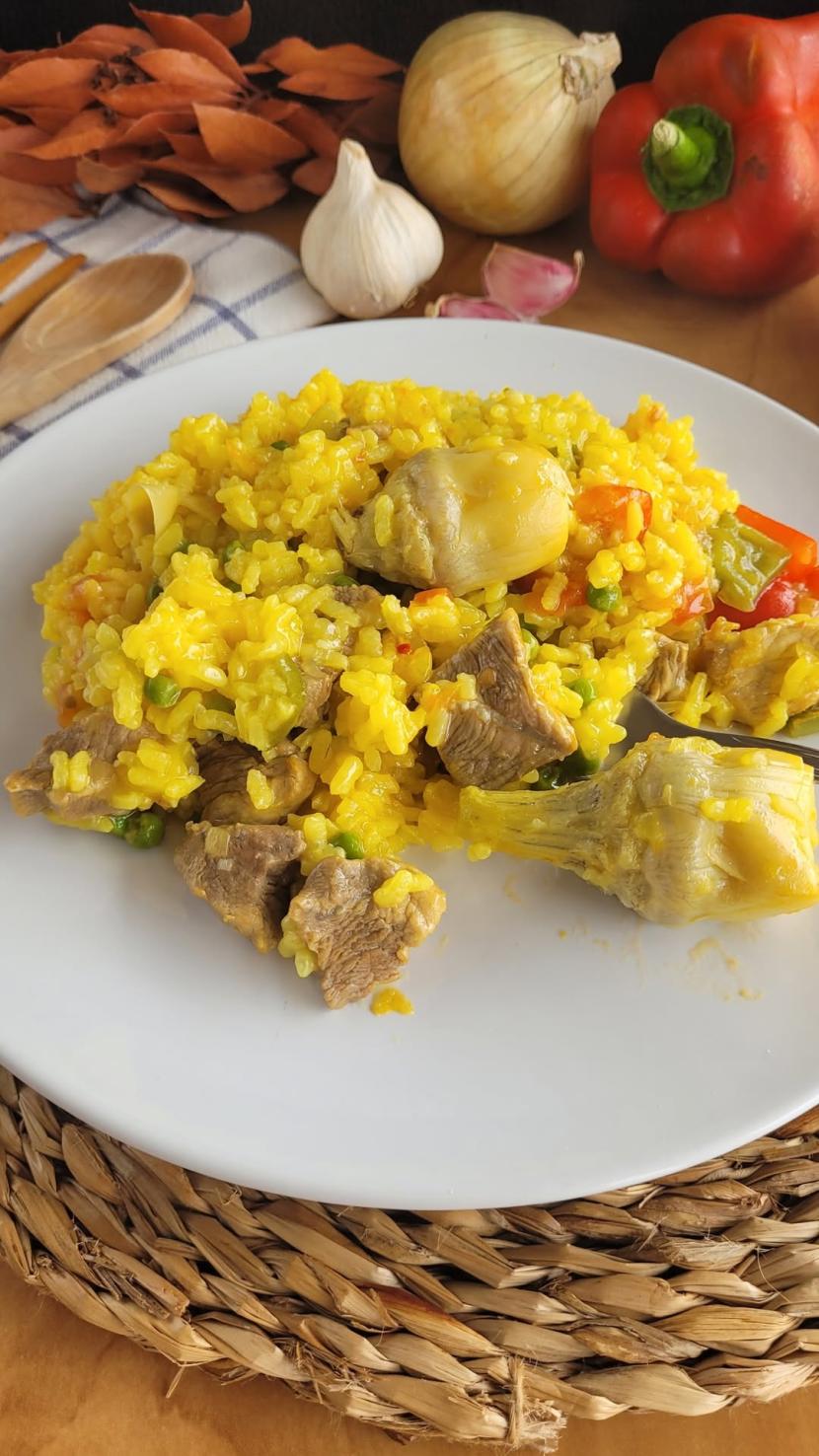Arroz con pollo y alcachofas