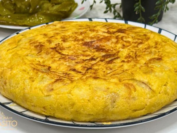 Tortilla de patatas con queso manchego y pimientos verdes