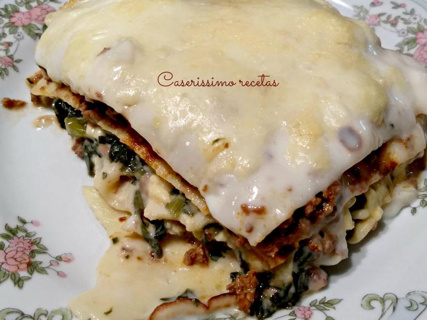 Lasagna o lasaña de acelga y carne con salsa blanca o bechamel