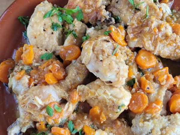 Muslos de pollo deshuesados al horno con patatasReceta de La cocina de Merche BorjasPublicada en Carnes, pollo y otras aves Ver la receta paso a paso Quizás te interesen también estas recetasPollo en salsa de la abuelacocineraymadreAbóndigas con tomateJulia y sus RecetasTernera al chocolateJulia y sus RecetasTiras de pollo fritoAnna Recetas FácilesConejo al ajillo receta fácil y tradicionalcocineraymadreCallos de ternera en salsa:La cocina de Merche Borjas