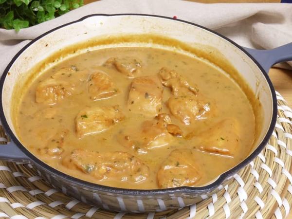 Pollo jugoso en salsa de yogur y naranja