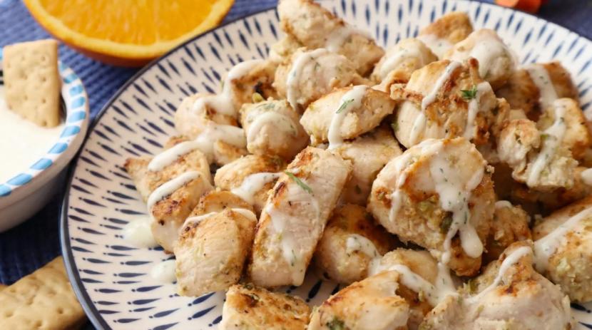 Pollo jugoso en salsa de yogur y naranja