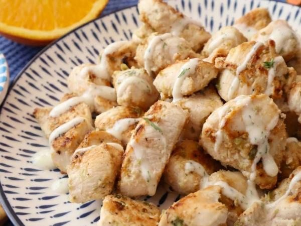 Pollo jugoso en salsa de yogur y naranja