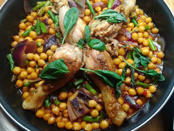Pollo a la sidra con manzana e hinojo